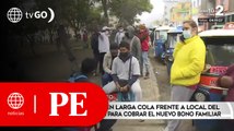 Beneficiarios hacen larga cola para cobrar Bono Familiar | Primera Edición