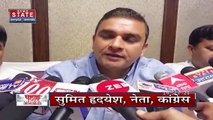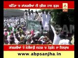 Congress party candidates who did not get ticket for election protest outside congress party office in Dehradun.