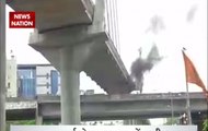 Bihar: A moving car catches fire over a flyover in Patna