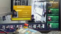 Seorang anggota PKK memakaikan pelindung wajah (face shield) kepada salah satu pedagang pada sosialisasi alat pelindung diri (APD) bagi pedagang di Pasar Sekip Ujung, Palembang, Sumatera Selatan.