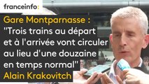 Au départ de la gare Montparnasse, trois trains au départ et à l’arrivée vont circuler au lieu d’une douzaine en temps normal, annonce Alain Krakovitch, de la SNCF