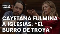 El punto y final a la enésima bronca en la sesión de control del Congreso de los Diputados de este miércoles ha venido a cuenta de un combativo discurso de Cayetana Álvarez de Toledo dirigido al vicepresidente segundo, Pablo Iglesias, al que entre otros apelativos ha acusado de ser el «embajador de ETA en el Gobierno de España» y «el burro de Troya de la democracia». Así ha contestado Iglesias.
