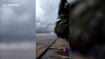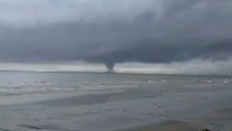 A rare triple waterspout formed in front of a picturesque sunset on an island in the Philippines this evening (May 30).<br /><br />The mesmerising natural weather phenomenon amazed residents on Talim Island in Rizal province shortly after 6pm local time.<br /><br />Footage shows the long, thin funnels of water stretching down from a dark grey cloud into the ocean on the horizon.<br /><br />Hundreds of locals were transfixed as they watched the beautiful sight. The waterspouts, or elephant trunk tornadoes, dissipated after around five minutes. <br /><br />Resident Ray Malubay said: ''There were three waterspouts. It was the most amazing things I've ever seen in the sea.''<br /><br />The triple waterspout was recorded from several different vantage points on the island. Some locals watched from roads or homes, while others captured the scene as they stood close to the beach.<br /><br />Marie Sanga added: ''The sunset was beautiful and with the waterspouts it was magical.''<br /><br />Waterspouts are are intense columns of swirling clouds that form over a body of water. They are most commonly found in subtropical areas and disappear shortly after they come into contact with land or once the pressure has dissipated. They are also classified as a non-supercell tornado over water.<br /><br />The Philippines' humid Southeast Asian climate combined with fierce thunderstorms caused by rapidly changing area pressures and temperatures leads to waterspouts in coastal areas.