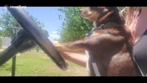 Cool cat in California patrols its neighborhood from the driver's seat