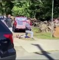 After local activists in St. Paul, Minnesota tore down a statue of Christopher Columbus today Wednesday (June 10), police surrounded the statue. A local Native American activist danced in front of the line of police.