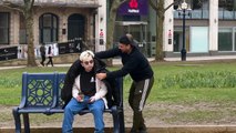 Secretly filming strangers- placing jacket on people- joker pranks latest 2023