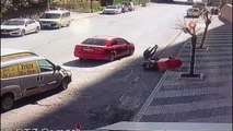 Erzurum’da meydana gelen trafik kazasında bir otomobil, kaldırımda yürüyen genci ezdi. Cinayet gibi kaza saniye saniye güvenlik kamerasına yansıdı.<br />
