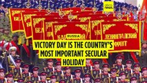 Russian President Vladimir Putin praises the Soviet troops' effort in WWII at the beginning of a massive military parade through Red Square in Moscow.
