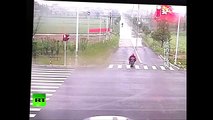 A reckless drunk motorcyclist crashed into a car while trying to overtake a truck in southern China.<br /><br />In the dashcam footage captured in Hunan province, a motorcycle driver was trying to overtake the truck. The motorist fell to the ground in panic and crashed into the car. The motorbike was then knocked several metres away. <br /><br />Fortunately, the car driver stopped in time and turned to the right to avoid rolling over the motorist.<br /><br />The three passengers in the car were unhurt because they were wearing seat belts. The motorcycle's driver suffered leg injuries and the backseat passenger suffered minor bruises.<br /><br />Traffic police quickly rushed to the scene and found that the motorcycle driver was drunk and did not obtain a motor vehicle driving license so the motorist took full responsibility for the accident and face a fine of 1,000 yuan and detention of fewer than 15 days for having no license.<br /><br />The footage was filmed on June 13 and provided by local media.