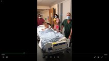 This video shows the emotional moment a dad-of-five with coronavirus left ICU for the first time in 63 DAYS.<br /><br />Masood Khan, 62, spent more than two months on a ventilator after being admitted to hospital back in April when he began struggling to breathe while at work.