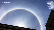 Multiple atmospheric phenomena were seen in the skies above the Swiss Alps on Les Diablerets near Sion on June 26.<br /><br />The sightings of not just a solar halo but a circumhorizontal arc was a particularly special scene.<br /><br />The filmer said: "A 22° solar halo is seen around the Sun, and below it, near the horizon, a bright portion of circumhorizon arc.<br /><br />"The solar halo is rather common but the circumhorizon arc can only be seen in summer here when the Sun is high enough in the sky. <br /><br />"The arc is some 46° below the Sun. "