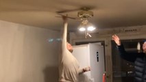 A toddler spun himself around on a barber's chair until he was so dizzy he stumbled into a Chinese shrine.<br /><br />The four-year-old lad named Ben was playing in the barber's shop while his father, Duc Duy, was talking on the phone.<br /><br />The father said he was so busy chatting with a customer making a reservations that he did not notice his son playing in the chair.<br /><br />CCTV footage from the shop in Binh Luc, Vietnam on June 10 at 7:40PM shows the toddler spinning his spinning game before stumbling across the ground.<br /><br />He then fell into a lucky Chinese shrine at the entrance but fortunately he was unhurt.<br /><br />Duc Duy said: "My little boy looked like a drunk person. When he fell over he looked worried for a while and called for me. It took a few minutes for him to recover.<br /><br />''Now when we watch it back it's funny but it's also scary because he could have been seriously hurt if he had fallen onto something dangerous.''