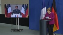 Merseberg (Alemania), 29 jun (EFE).- La canciller alemana, Angela Merkel, y el presidente francés, Emmanuel Macron, pidieron este lunes un acuerdo "eficaz" sobre el plan de reconstrucción europeo para hacer frente a las repercusiones de la pandemia, tras una reunión en la casa de huéspedes del Gobierno alemán en Merseberg, en las afueras de Berlín.<br /> <br />INCLUYE IMÁGENES CEDIDAS POR EL BUNDESREGIERUNG Y EL PALACIO DEL ELÍSEO Y DE ARCHIVO <br /> <br />Palabras clave: efe,internacional,alemania,merkel,francia,macron,ue,nomonetizar