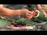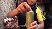 Cooking a freshly shot wild boar inside a bamboo hollowed up for the purpose, in Arunachal Pradesh state of India. Wild boar (Sus scrofa), also known as wild pig, is a species of the pig genus Sus, part of the biological family Suidae. The species includes many subspecies. It is the wild ancestor of the domestic pig, an animal with which it freely hybridises. Wild boar are native across much of Northern and Central Europe, the Mediterranean Region (including North Africa's Atlas Mountains) and much of Asia, including Japan and as far south as Indonesia. Populations have also been artificially introduced in some parts of the world, most notably the Americas and Australasia. Elsewhere, populations have also become established after escapes of wild boar from captivity. Source: Wikipedia This footage is part of the professionally-shot broadcast stock footage archive of Wilderness Films India Ltd., the largest collection of HD imagery from South Asia. The Wilderness Films India collection comprises of tens of thousands of hours of high quality broadcast imagery, mostly shot on HDCAM 1080i High Definition, HDV and XDCAM. Write to us for licensing this footage on a broadcast format, for use in your production! We are happy to be commissioned to film for you or else provide you with broadcast crewing and production solutions across South Asia. We pride ourselves in bringing the best of India and South Asia to the world... Reach us at rupindang @ gmail.com and admin@wildfilmsindia.com.<br /><br />