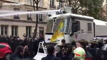 Les CRS utilisent finalement leur canon à eau et font fuir les #pompiers en colère