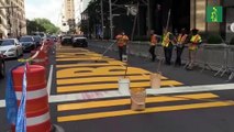 Nueva York (EE.UU.), 9 jul (EFE/EPA).- (Imagen: Justin Lane/Nora Quintanilla/Aba Vigaray) Un enorme eslogan amarillo de "Black Lives Matter" luce desde este jueves en la calzada frente a la Torre Trump de Nueva York, un proyecto de arte público con el que el alcalde Bill de Blasio desafía al presidente de EE.UU., Donald Trump, y con el que el movimiento antirracista busca atraer miradas y "encender la mecha" de la solidaridad.