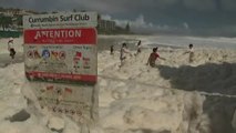 Un espumoso mar atrae a familias australianas a bañarse en la orilla