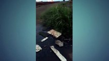 Motociclista faz alerta após quase cair em grande buraco na saída do Cascavel Velho