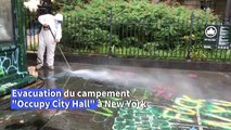 Crews worked to clean up City Hall Plaza on Wednesday (July 22) after NYPD cleared out 'Occupy City Hall' protesters.