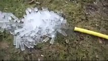After supercooling, water turns instantly into ice when poured into a metal water bottle.<br /><br />Footage filmed on July 21 shows water, which was supercooled overnight, turning into ice as it is being poured into a bottle. <br /><br />One Reddit user explained the process: "Water won't freeze without a nucleation point to start the crystal formation. <br /><br />"So you take pure water in a clean container, cool it to below 0 degrees Celsius and then agitate it in some way. <br /><br />"Shaking it is a common way to do it as you get to see the water quickly turns from a liquid to a solid."