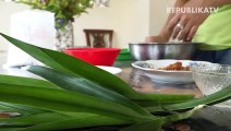 Seorang warga menyantap kue klepon.