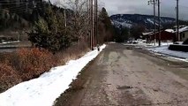 This duck followed a girl in her house. They walked behind her in the same direction as she did. The bird hilariously increased her speed while following her as she started to run around the house.