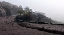 An unexpected landslide struck a high-mountainous road obstructing traffic on the entire stretch of the route in northeastern India's Sikkim.<br /><br />The incident took place on the road connecting Legship to Jorethang in West Sikkim on July 24.<br /><br />The dramatic video shows massive boulders and loose rocks raining down from the steep terrain of the mountain in several waves.<br /><br />A few people can be seen gathered in the area while observing the incident from a distance. <br /><br />According to reports, the debris piled up on the road halted transit on the roadway along the entire stretch.