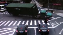 This is the heart-stopping moment a cyclist narrowly avoided being crushed by an overtaking truck.<br /><br />The man was riding his racing bike along a rural road in Nonthaburi, central Thailand, when the lorry went to pass him.<br /><br />However, the bike rider lost his balance and toppled onto the ground - his head coming within a few inches of the huge wheels.<br /><br />Passing driver Todsapon Juncamenon recorded the crash when it happened during a curve in the road on July 11. <br /><br />He said the man's bike was destroyed by the container truck. The cyclist suffered knee grazes in the accident. He was treated at the scene then continued with his exercise ride.<br /><br />Todsapon said: "He was very lucky not to have been killed in the accident. The truck driver stopped to help and he was shaken. He was afraid at first that he had driven over the rider.''