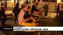 Night after night for nearly two months, protesters have taken to the streets of Portland, Oregon, for demonstrations against racial injustice that have devolved into vandalism and clashes with authorities on July 22, 2020. <br /><br />More recently, the Trump administration’s decision to call in federal agents to help protect the federal courthouse — the focus of much protest activity — has galvanized many in Portland anew. <br /><br />Protests have again swelled and attracted a broader base in a city that’s increasingly unified and outraged about the use of federal officers. The clashes have continued, with some protesters trying to break into the courthouse, while authorities respond with tear gas and projectiles.