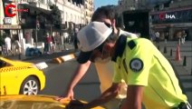 Taksim'de polislerden ticari taksilere ve yolcularına maske denetimi