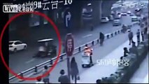 A woman dragged a gas cylinder on a road after she accidentally ignited it when using the fire to clean duck feathers in southern China.<br /><br />In the video, filmed in the city of Yueyang in Hunan Province on July 28, a woman is seen holding a pipe attached to a gas cylinder to try to use the fire to clean duck feathers.<br /><br />However, the pipe pointed towards the gas cylinder and ignited it. The woman then attempted to blow the fire out immediately.<br /><br />Since it did not work, she kicked the cylinder over onto the ground and dragged it along the road.<br /><br />Fortunately, the fire was finally put out.<br /><br />The video was provided by local media with permission.