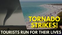 On a sunny beach day out in Maldive del Solento, Italy, on Tuesday (August 25), people were relaxing and swimming through the turquoise water, when they began to see a tornado among dark clouds approaching. <br /><br />Within a few minutes, the sky was dark, thunder and lightning began to appear at a distance. People quickly started packing their things to evacuate the beach. <br /><br />"We started packing our things and we looked up and saw what seemed to be impossible--a tornado forming and moving in our direction," the filmer said. "We started running for our lives, away from the tornado."