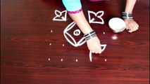 creative kolam ,rangoli design, with 5 dots , easy & simple, muggulu