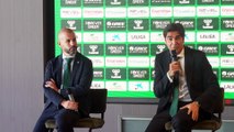 Presentación oficial de Víctor Ruiz, Claudio Bravo y Martín Montoya como nuevos jugadores del Betis, desde el hotel de concentración en Marbella y en compañía del presidente, Ángel Haro, y del director deportivo, Antonio Cordón.