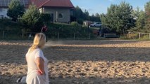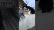 Dally, the dog, had recently lost their sight, but that didn't keep them from having some fun. They jumped on Spanky, the horse's back, and rode them as they jumped over hurdles in their way. Both the best friends seemed to have a great time with each other.