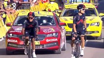 Michal Kwiatkowski and Richard Carapaz of the Ineos Grenadiers team attacked late on stage 18 of the 2020 Tour de France and rode all the way to the finish together, with Kwiatkowski taking the win.
