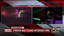 The windows and roof of this house shattered due to a gas leak across the street. A fire was ablaze and destroyed property lay strewn across the house and the street.