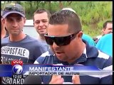 ¡Ante bloqueo de ganaderos! Antimotines habilitan paso de vehículos con lácteos en Olancho