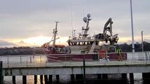 Fishing trawler Fiona K III turning 180 to dock on the Foyle