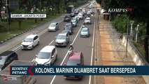JAKARTA, KOMPAS.TV - Seorang pesepeda yang diduga salah satu anggota TNI Angkatan Laut berpangkat Kolonel dibegal di Jalan Medan Merdeka Barat, Gambir, Jakarta Pusat <br /> <br />Dari video amatir, pria paruh baya ini masih nampak shock dan lemas usai terjatuh dari atas sepeda yang dikendarainya. Sejumlah warga dan polisi berusaha menolong pria tersebut yang ternyata merupakan korban penjambretan. <br /> <br />Pria yang diduga seorang anggota TNI Angkatan Laut Berpangkat Kolonel itu menjadi korban penjambretan dua pria tak dikenal yang beraksi menggunakan sepeda motor. <br /> <br />Saat itu korban yang bernama Kolonel Marinir Pangestu Widiatmoko yang tengah mengayuh sepeda dari arah Harmoni menuju bundaran Patung Kuda tiba - tiba di pepet pelaku dan langsung merampas tas korban yang terikat di belakang sepeda. <br /> <br />Sikap spontan sekaligus berusaha mempertahankan barang berharganya membuat korban akhirnya jatuh tersungkur bersama sepedanya. <br /> <br />Meski pelaku gagal merampas tas korban, namun akibat kejadian tersebut korban mengalami luka memar di bagian kepala dan robek pada pelipis mata. <br /> <br />Kasatreskrim Polres Metro Jakarta Pusat AKBP Burhanudin membenarkan aksi penjambretan yang terjadi pada Senin pagi itu. <br /> <br />Namun pihaknya masih melakukan pengecekan kamera pengawas CCTV agar bisa mengindentifikasi para pelaku. <br /> <br />Korban sempat di larikan ke rumah sakit untuk mendapat pertolongan medis. <br /> <br />Sementara polisi masih melakukan pengejaran terhadap pelaku penjambretan yang diduga berjumlah dua orang tersebut. <br /> <br />