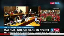 EFF leader Julius Malema and MP Mbuyiseni Ndlozi are back at the Randburg Magistrate's Court. They're facing charges of assaulting a police officer at the funeral of Winnie Madikizela-Mandela in 2018. There's a heavy police presence outside court as EFF members are expected to attend in numbers. eNCA reporter, Siphamandla Goge is outside court. Courtesy #DStv403