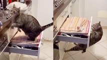 ''Mission ImPAWssible' - Hungry cat smartly gets atop kitchen platform to get some chicken '
