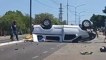 Una camioneta con tres ocupantes terminó volcada este domingo sobre la avenida Sabin en intersección con avenida Martina.<br /><br /><br /><br /><br />