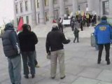 Pro-Israel Supporters on the streets with the pro"palis" Before they march to the Israeli Consulate the cops are on 'stick' patrol with the 'palis'...no sticks on signs!