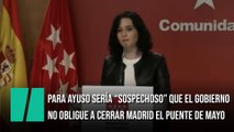 Ayuso dice que sería "sospechoso" que el Gobierno central no obligue a cerrar Madrid el puente de mayo