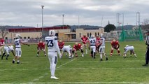 Courageux ! C’est le mot qui pourrait d’écrire à lui seul ce match ! <br />Oui, Courageux ont étés les cadets marseillais composés pour la quasi-totalité de rookie ! <br />Courageux ont étés les cadets d’avoir accepté de jouer en sous effectif contre le rouleau compresseur aixois et ses doubles titres de champions de France consécutifs ! <br /><br />10 heures, le coup d’envoi est lancé au stade de St Menet, dans la boue les Aixois et leurs quelques 50 joueurs entrent en piste contre 11 valeureux marseillais : un détail tant les marseillais leurs tiendront la dragée haute durant l’espace des deux premiers quarts temps. <br /><br />L’honneur sera même sauf puisque un TD marseillais sera inscrit vers la fin du match. Le quaterback #9 Abdelkader Ziani d’une course au centre, en force, traversa la end zone adverse et marqua les premiers points de l’année pour son équipe ! <br /><br />Ils perdront ce premier match de la saison bien évidement. <br /><br />Mais l’histoire ne dit pas que les marseillais ont gagnés bien plus qu’une victoire ce jour là.