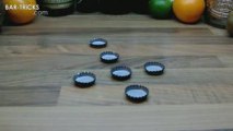 Girl Shows Off Skills by Striking Plastic Caps Placed Under Beer Bottles Without Breaking Them