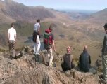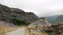 Views towards the village of Llanberis and Mount Snowden / Yr Wyddfa from Elidir Fawr, Cymru / Wales. Deep inside this mountain is the Dinorwig power station, so it is known locally as the "Electric Mountain". The Anglesey barracks, used by slate quarry workers from Anglesey, can also be seen.