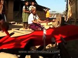 Lotha women weaving on back strap looms, Longsa village, Nagaland