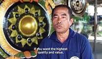 The unmistakable sound of the gong has held spiritual significance in Southeast Asia for centuries. Hand-beaten from sheet materials, the labor-intensive shaping and delicate paintwork result in beautiful percussive instruments. Souvenir gongs can be bought for just a few dollars, but large, finely tuned gongs made from the best materials can fetch tens of thousands of dollars.